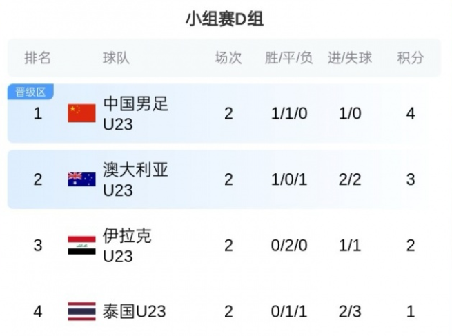 D组末轮比赛今晚进行,泰国队vsU23国足,伊拉克队vs澳大利亚队。U23国足今晚打平就出线,赢球即小组第一。U23国足若小组第一出线将战韩国,小组第二出线将战乌兹别克斯坦。
