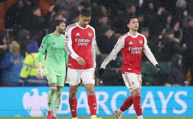 北京时间2月19日,英超第31轮,阿森纳客场2比2战平狼队。上半场第5分钟,赖斯斜传助攻萨卡头球破门,打破其连续15场进球荒,阿森纳1比0领先。下半场第56分钟,因卡皮耶接加布里埃尔直塞突入禁区爆射得手,VAR确认进球有效,比分扩大为2比0。第61分钟,狼队角球二次进攻中,圣地亚哥·布埃诺轰出世界波扳回一城。第73分钟,萨卡因伤被特罗萨德替换下场。补时第4分钟,埃多齐禁区内射门击中卡拉菲奥里后弹柱入网,狼队2比2完成绝平。